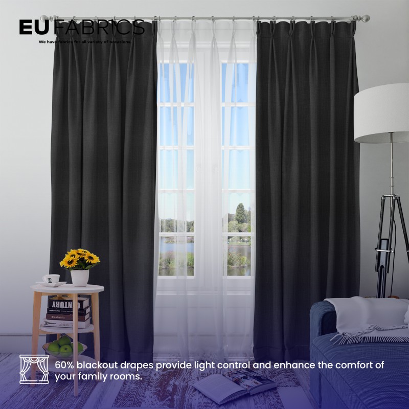 This high-quality polycotton blackout fabric offers 60% light blockage, making it an excellent choice for reducing glare and softening light in a variety of spaces. Whether you're dressing windows or covering ceilings, it delivers functionality with a clean, professional finish.