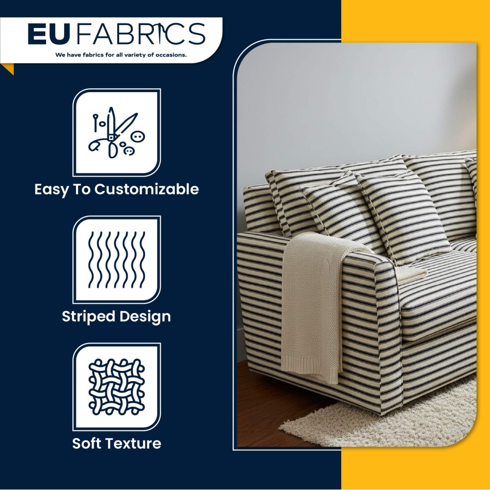 Our cotton stripe fabric is selected for consistent quality, reliable strength and timeless appeal. Whether you need upholstery cotton stripe fabric or cotton stripe fabric for curtains, this material offers dependable performance and a refined striped finish suitable for a wide range of applications.
