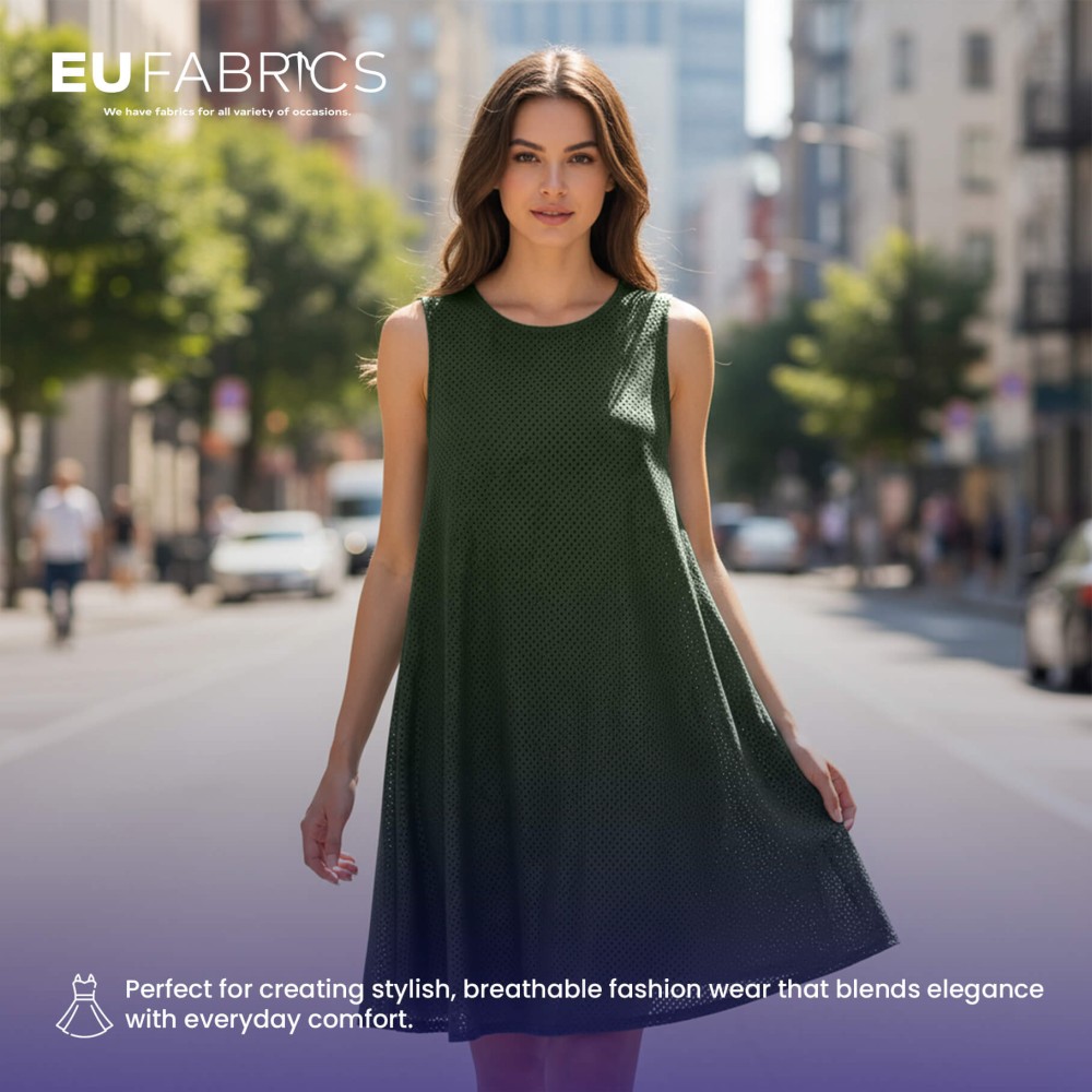 Olive airtex mesh fabric features a classic fish net structure with evenly spaced open holes, offering excellent airflow and a clean, contemporary appearance. The rich olive tone adds a natural and versatile colour option that works well across activewear and fashion garments. This polyester airtex fabric is lightweight yet strong, making it suitable for both structured and relaxed designs.