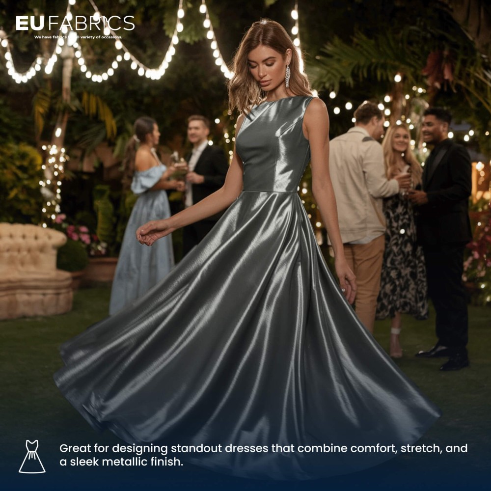Our stretch metallic jersey fabric combines durability, comfort and a refined silver finish. The foil jersey fabric silver design offers flexibility without compromising on style, making it a reliable choice for both fashion and performance garments.