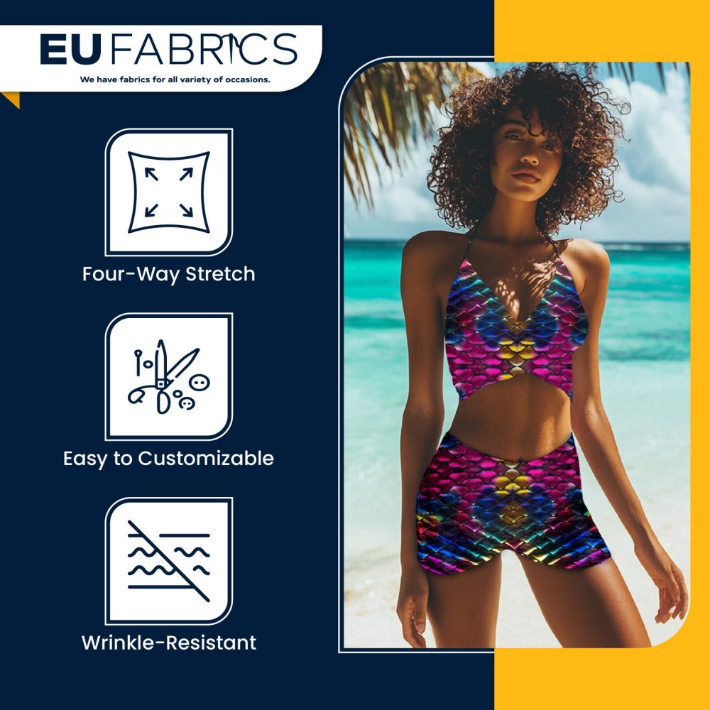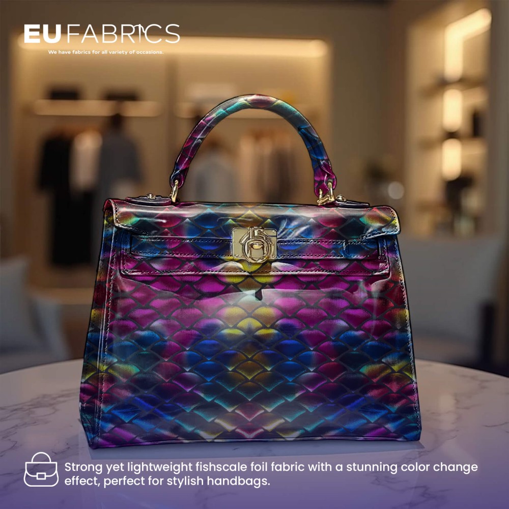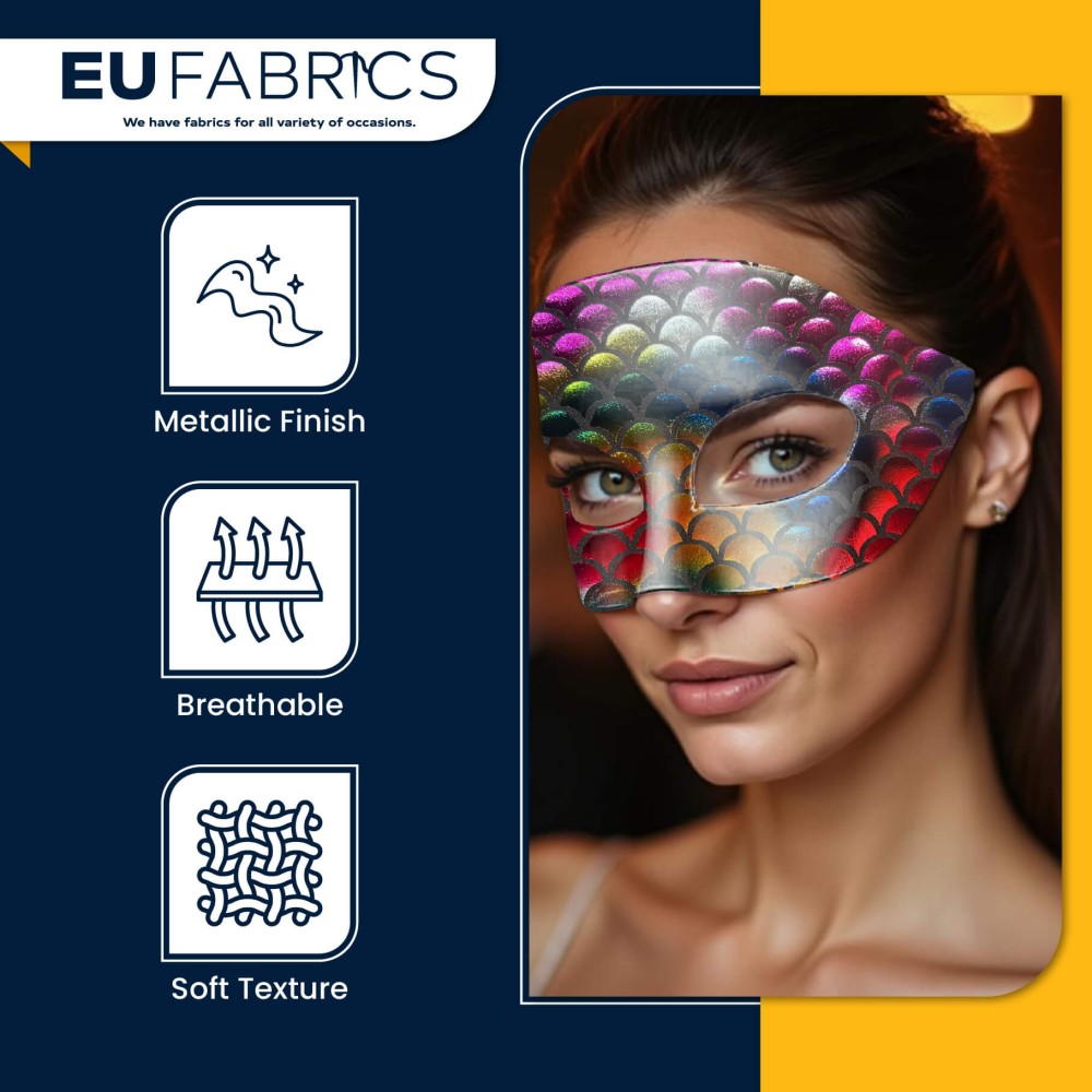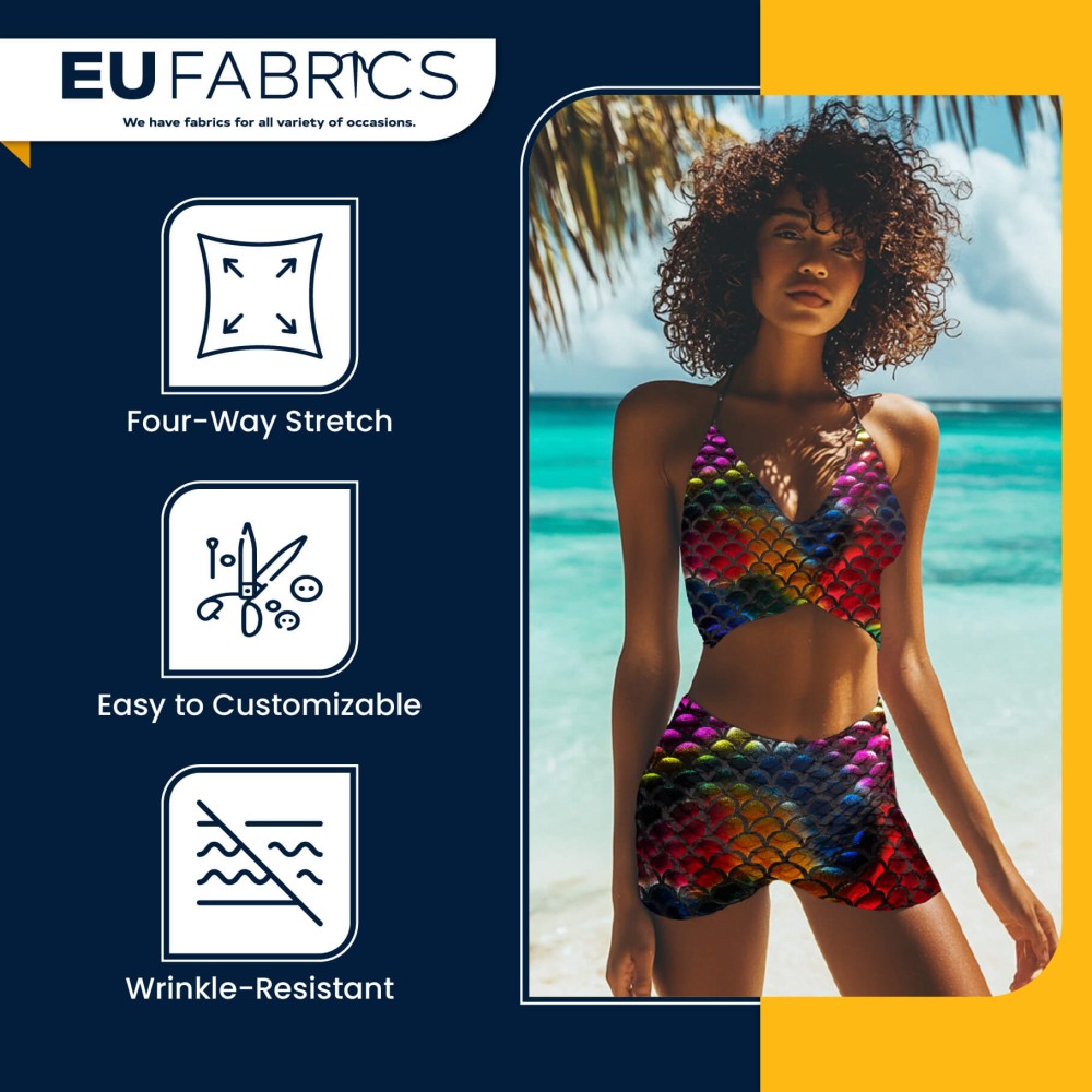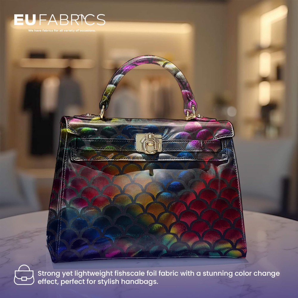 This Mermaid Scale Fabric combines style, stretch, and durability for all your creative needs. Its Fishscale Foil Fabric design delivers a standout metallic look while remaining soft and flexible, ideal for garments that require both movement and visual impact. The Rainbow Stretch Fabric ensures your designs retain their shine and shape, giving your projects a professional, high-quality finish.