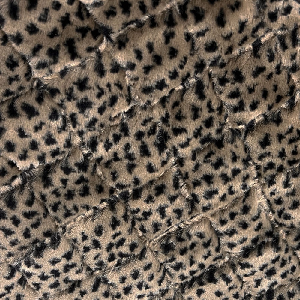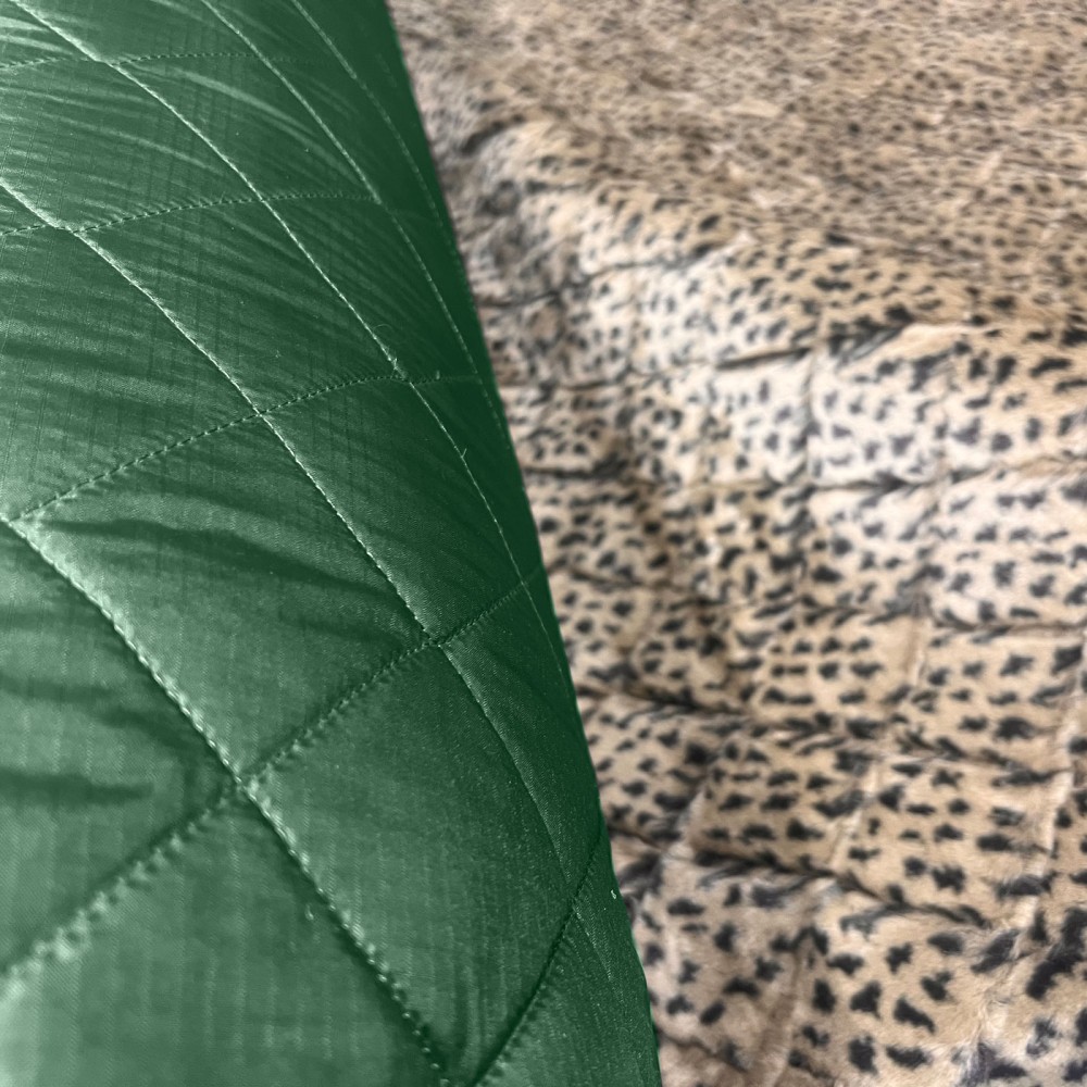 A soft and warm faux Cheetah Spot fur with Green Rip-stop backing on 70 gram wadding.