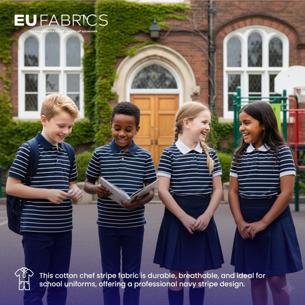 Our cotton chef stripe fabric combines practical durability with style, making it an excellent choice for chef uniforms, workwear, and creative projects. With 100% cotton construction, it is breathable and long-lasting, while the bold striped design adds a professional and appealing touch. This fabric is versatile for tailoring, crafting, and apparel, providing a reliable solution for multiple uses.