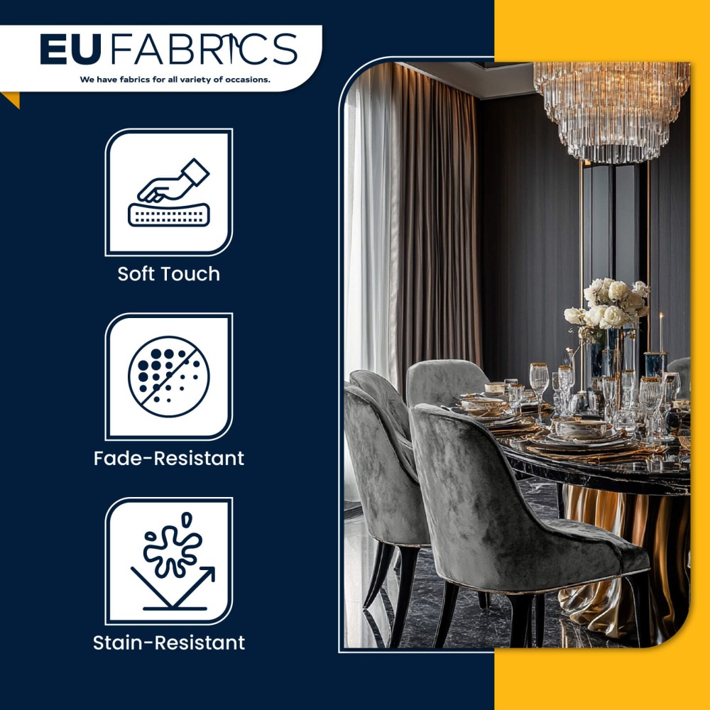 Bling Fire Retardant Upholstery Fabric combines durability with a velvet like texture, making it a practical and stylish choice for modern interiors. As a high quality contract upholstery fabric, it is designed to handle everyday wear while maintaining its rich appearance and comfortable feel. With a generous 145cm width, it allows for efficient coverage across a wide range of upholstery projects.